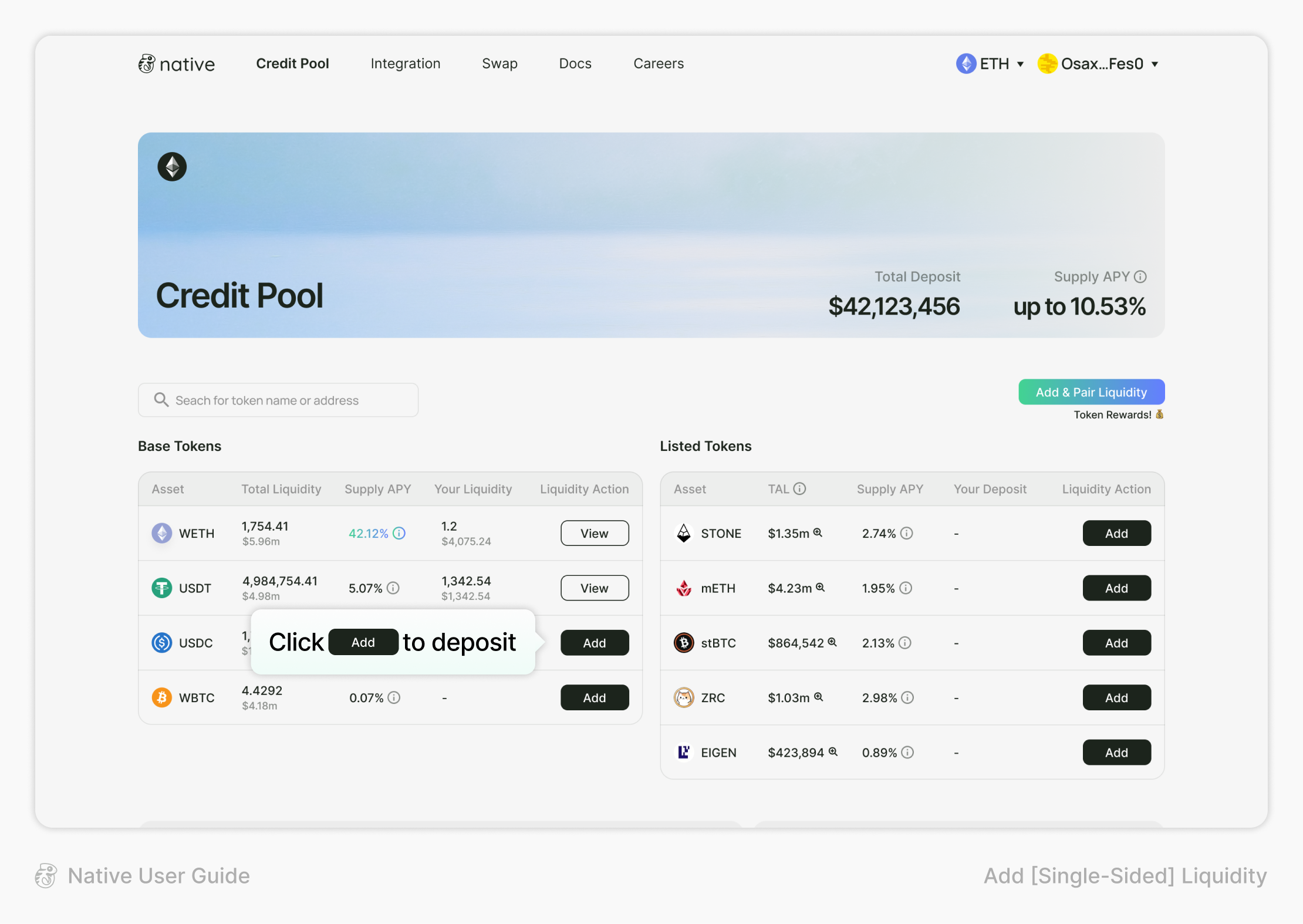 #### **To Add Single-Sided Liquidity on Native:**